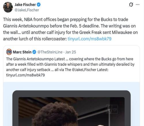消息來自于美媒《The Stein Line》名記Jake Fischer對(duì)于字母哥潛在價(jià)值的長(zhǎng)文分析。