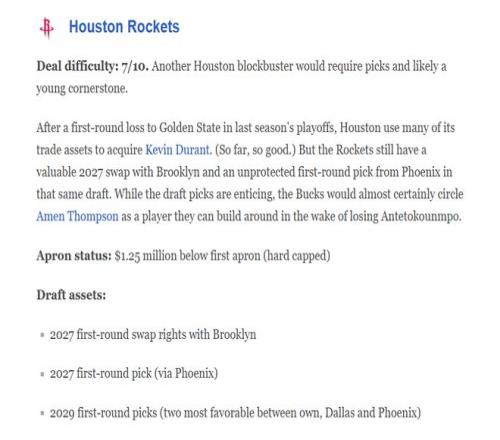 字母哥被曝離隊(duì)已不可避免!ESPN曬出其余29支球隊(duì)潛在交易籌碼,其中火箭隊(duì)手握海量籌碼成熱門下家候選,湖勇船三隊(duì)競(jìng)爭(zhēng)力有限。