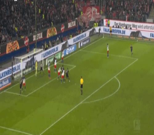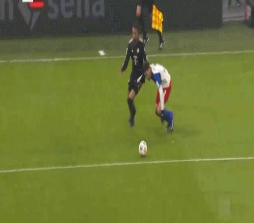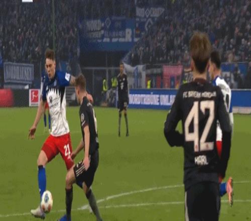 第34分鐘,小紅書丨裁判判罰基米希犯規(guī),法比奧-維埃拉點(diǎn)射,漢堡1-0拜仁