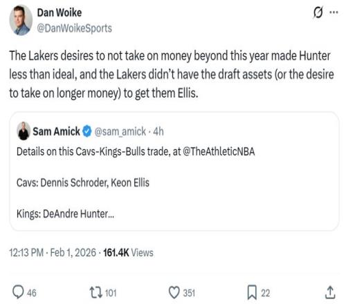 結(jié)果國王與騎士兩隊將亨特與埃利斯兩大湖人心上人完成互換,國王還為此貼上選秀權(quán)。