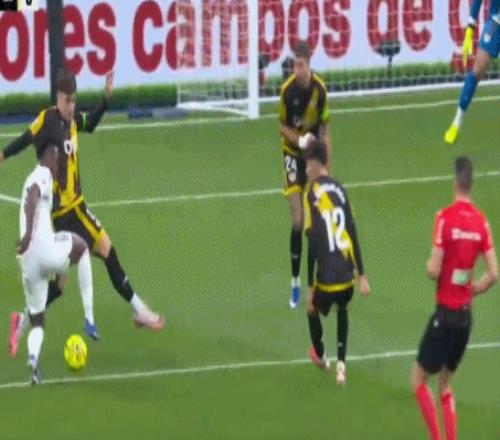 第15分鐘,維尼修斯左路得球內(nèi)切,面對(duì)三名后衛(wèi)的逼搶,維尼修斯右腳勁射,球擊中橫梁之后反彈入網(wǎng)。進(jìn)球之后,維尼修斯多次親吻隊(duì)徽,并且示意皇馬球迷加油。