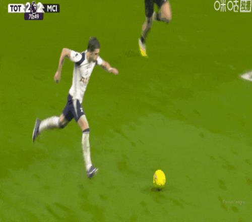 比賽第70分鐘,索蘭克蝎子擺尾完成梅開二度!熱刺2比2曼城。