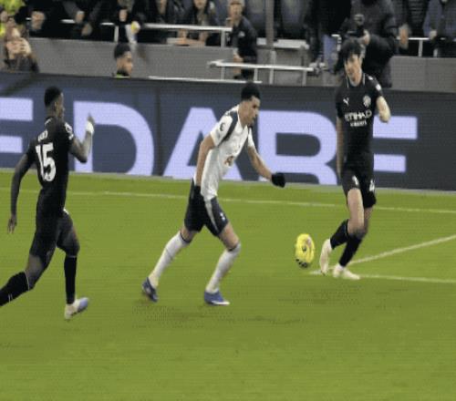 通過慢動作可以清楚看到,索蘭克踢到了格伊的腳踝,格伊踢到了球,皮球才進(jìn)了球門。也就是說,進(jìn)球前,索蘭克疑似犯規(guī)。