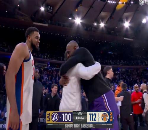 當時可以看到,人家尼克斯全隊5個人在詹姆斯去上籃的時候,都已經(jīng)不防守了,就看著他刷兩分,因為知道這個兩分是改變不了局面的兩分,你去刷這個兩分沒有意義,這就是無非就是得分和數(shù)據(jù)我要帶走,勝利我不要的意思了。