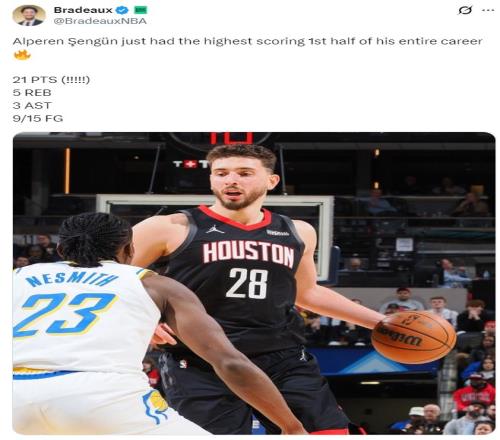 杜蘭特因傷缺席,申京再度回到上賽季的那種戰(zhàn)術(shù)地位,開場短短5分鐘就拿到9分(火箭全隊(duì)13分),首節(jié)申京9中5已經(jīng)拿到11分2籃板1助攻。