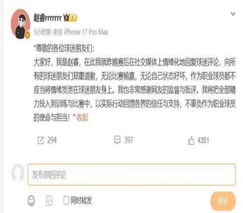 不得不說(shuō)趙睿和他團(tuán)隊(duì),或者說(shuō)北京首鋼隊(duì)的公關(guān)團(tuán)隊(duì)確實(shí)厲害,出事后第一時(shí)間向球迷和社會(huì)公眾道歉,不做過(guò)多的辯解,只說(shuō)自己的不足之處,并且說(shuō)自己認(rèn)識(shí)到了錯(cuò)誤要改正,態(tài)度也很好非常的誠(chéng)懇,這樣球迷也沒(méi)有什么說(shuō)的了。球員作為公眾人物,尤其趙睿還是男籃國(guó)家隊(duì)的隊(duì)長(zhǎng),他更應(yīng)該注意自己日常的言行,被球迷網(wǎng)友罵幾句說(shuō)幾句感覺(jué)不舒服了自己可以私底下發(fā)牢騷,但是在網(wǎng)上和球迷網(wǎng)友互懟肯定是不行的,不管任何時(shí)候都要控制好自己的情緒。