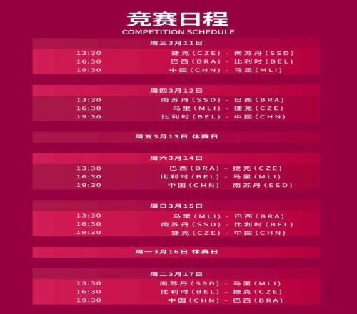 中國(guó)女籃第二場(chǎng)、第三場(chǎng)分別將在3月12日對(duì)陣比利時(shí)女籃、3月14日對(duì)陣南蘇丹女籃