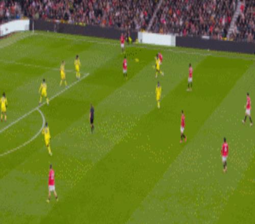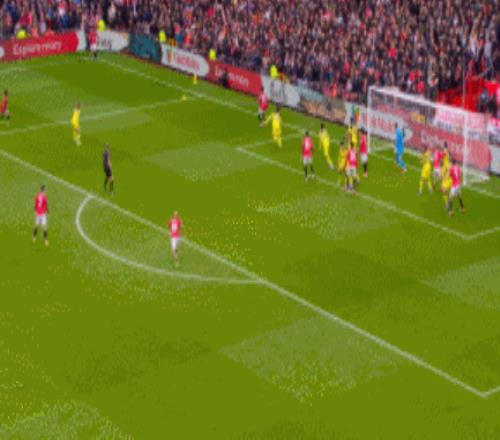 第38分鐘,曼聯(lián)精妙戰(zhàn)術(shù)角球,梅努送出橫傳,姆伯莫禁區(qū)內(nèi)低射破門,比分1-0!