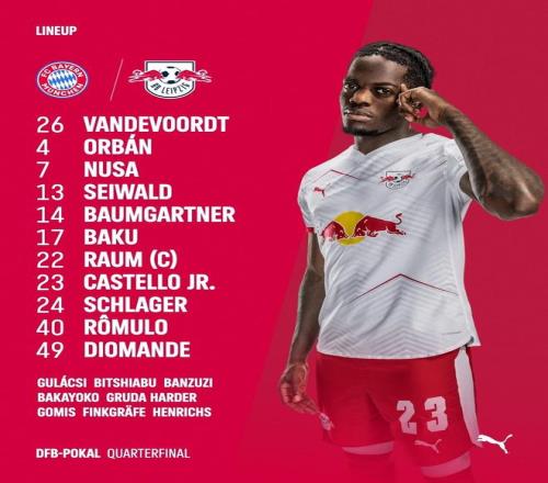 北京時(shí)間2月12日凌晨3點(diǎn)45分,德國(guó)杯1/4決賽展開(kāi)一場(chǎng)焦點(diǎn)戰(zhàn)役,拜仁對(duì)陣萊比錫。賽前,雙方公布首發(fā)陣容。