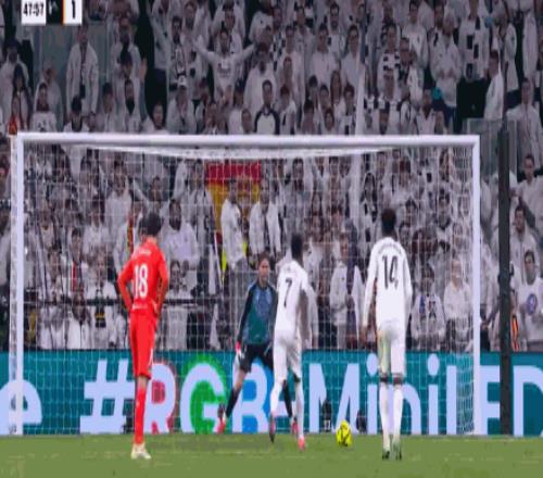 第48分鐘,梅開二度,維尼修斯再次造點(diǎn)并罰入,皇馬4-1