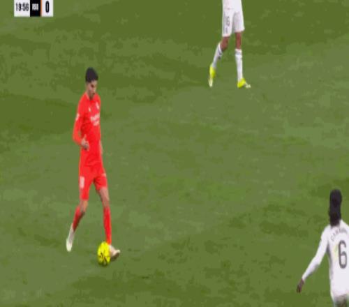 第44分鐘,維尼修斯突破虛晃后射門,被皇家社會后衛(wèi)擋出