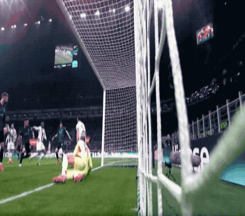 第41分鐘,阿坎吉的頭球被門將奮力撲出,巴斯托尼的補(bǔ)射先后擊中兩側(cè)的門柱,尤文圖斯逃過(guò)一劫。