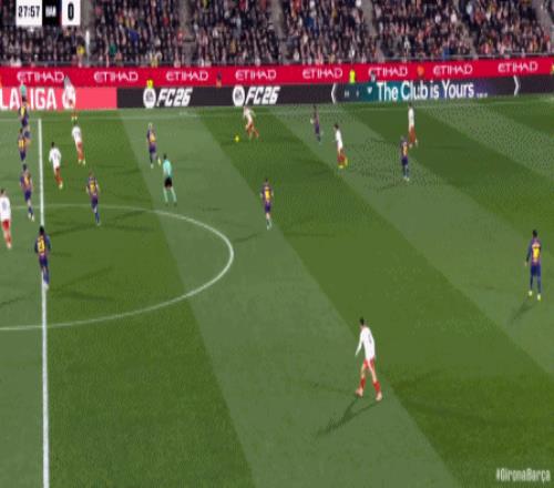 第90+9分鐘,霍埃爾-羅卡踢倒亞馬爾被直紅罰下,赫羅納少一人作戰(zhàn)