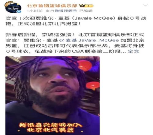 這位擁有NBA冠軍基因的內(nèi)線,已經(jīng)迫不及待,麥基難掩興奮,他表示很榮幸加入北京北汽男籃,期待與隊友并肩作戰(zhàn),用激情與實力回饋京城球迷,還特意通過視頻的方式為大家送上新春祝福!