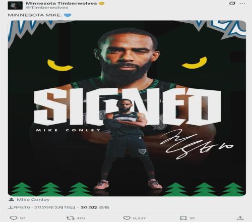 北京時間2月18日上午6點,明尼蘇達森林狼隊官方宣布:球隊正式簽回38歲老將邁克-康利。這是一份老將底薪合同,雙方簽約至本賽季結(jié)束。康利原有合同2年2100萬美元,今年夏天到期。此前他被黃蜂裁掉,恢復(fù)了自由身。