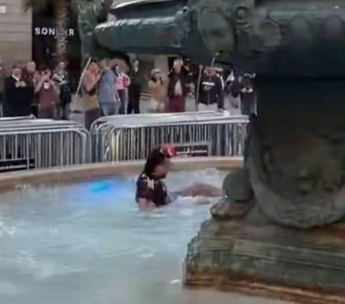 大戰(zhàn)在即,紐卡球迷在巴塞羅那街頭開(kāi)大腳、噴泉池里“泡澡”